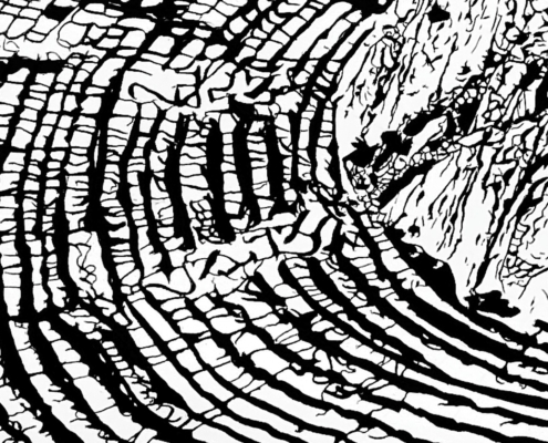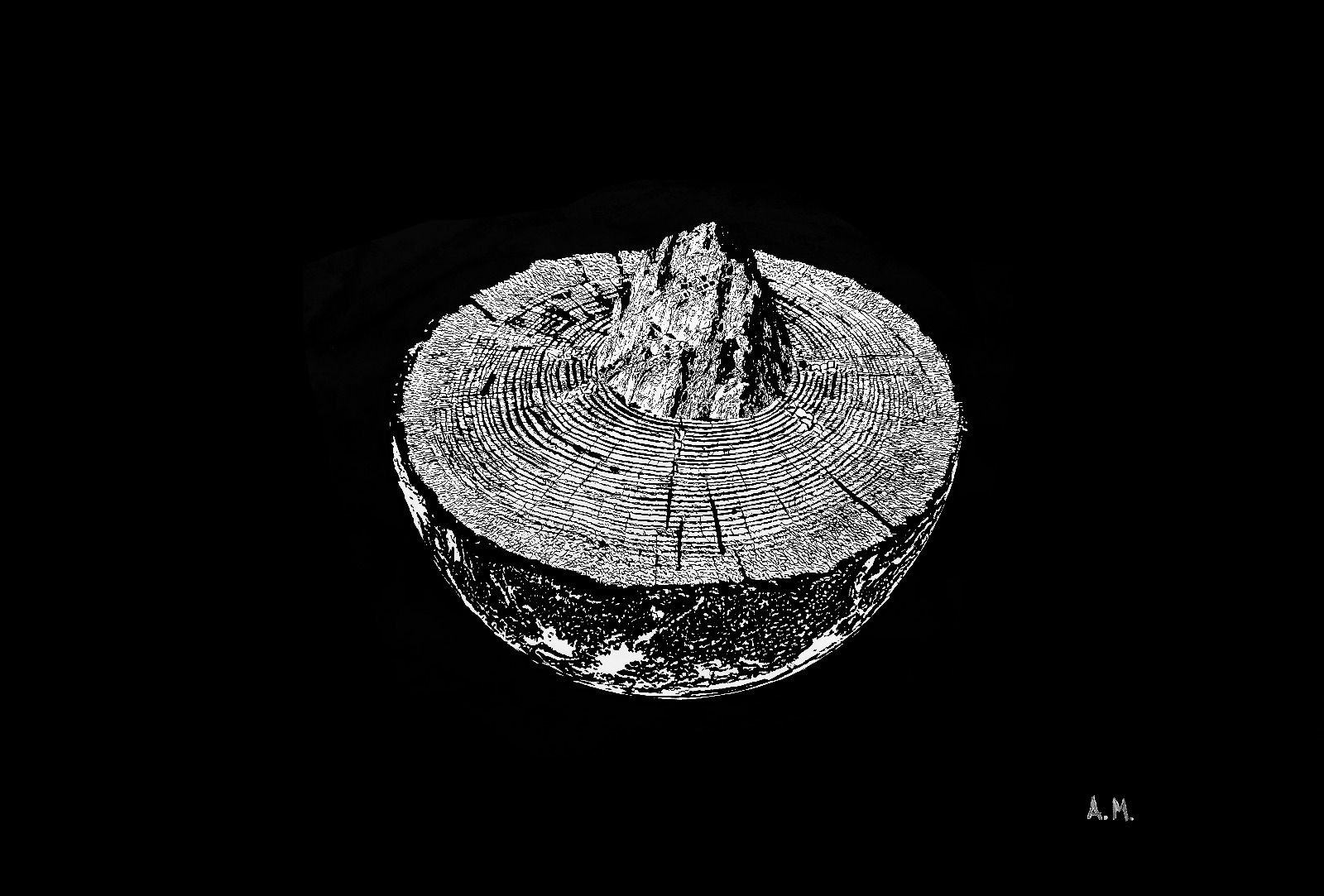 La roche évoque l’infini, le sol divin d’où toute vie émerge. C’est à partir de cette base primitive que l’existence jaillit : d’abord sauvage et indomptée, puis doucement guidée par des lois qui stabilisent sa croissance comme des piquets dans un jardin. Contrairement aux règles changeantes qui reflètent les besoins de la société, ces lois sont inscrites Au commencement. Elles forment les courants cachés qui font fleurir les fleurs, l’intuition silencieuse du corps qui aime, donne et nourrit une famille.